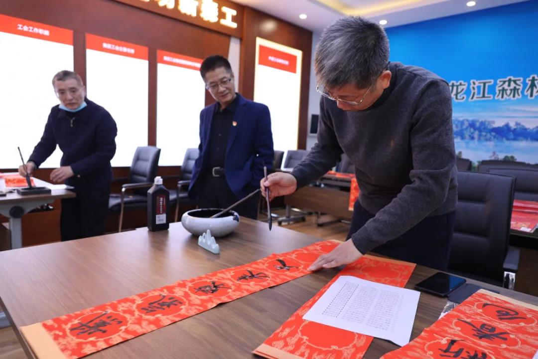 妙筆生花迎新年,翰墨飄香送祝福。29 日上午,龍江森工集團總部機關“迎新春 寫春聯(lián) 送祝?!被顒釉诼毠ぶ遗e辦,來自林區(qū)的書法家和書法愛好者們現(xiàn)場創(chuàng)作,通過一幅幅春聯(lián)將筆尖上的年味和美好的祝福送給員工。