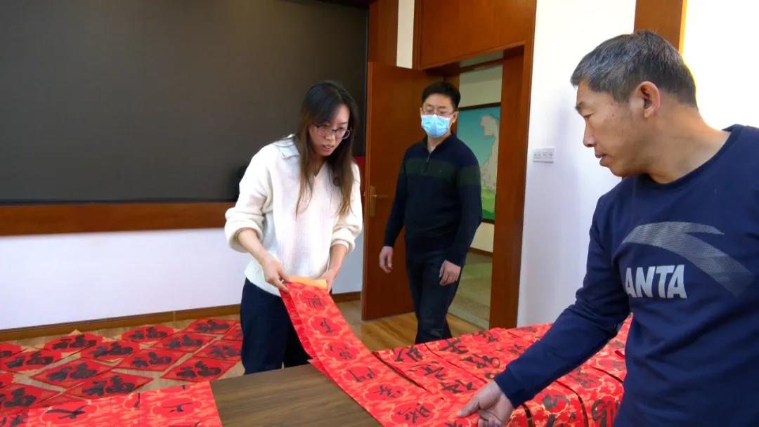有的駐足欣賞,有的排隊等候……前來領取對聯(lián)的員工絡繹不絕。紅紅的春聯(lián),飄動的墨香,讓大家感受到了漸行漸近的濃濃年味。“春聯(lián)雖小,卻情意濃濃,感謝集團在寒冬里為我們送上這份溫暖,祝愿大家都能度過一個祥和、幸福的新春佳節(jié)?!蹦玫酱郝?lián),集團公司經營管理部員工姜春萌喜笑顏開。